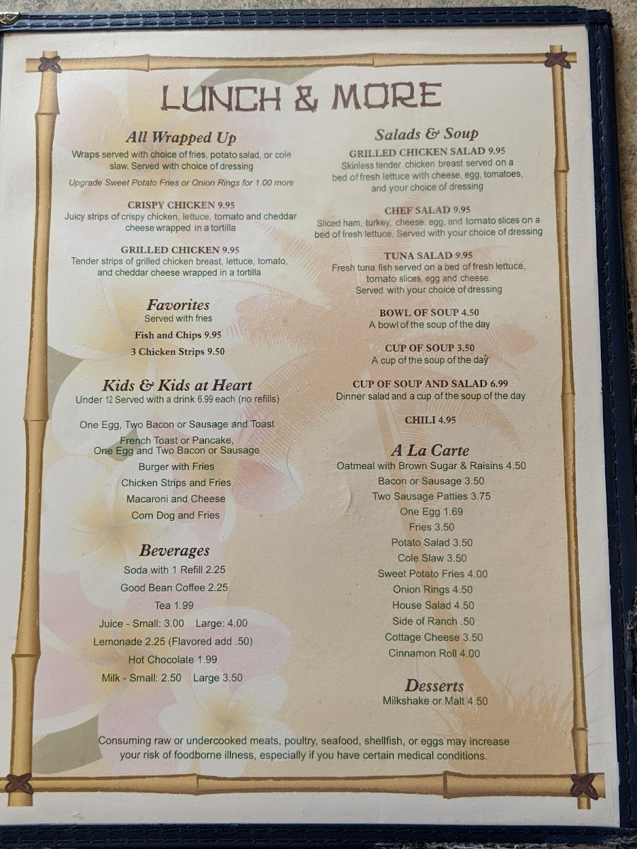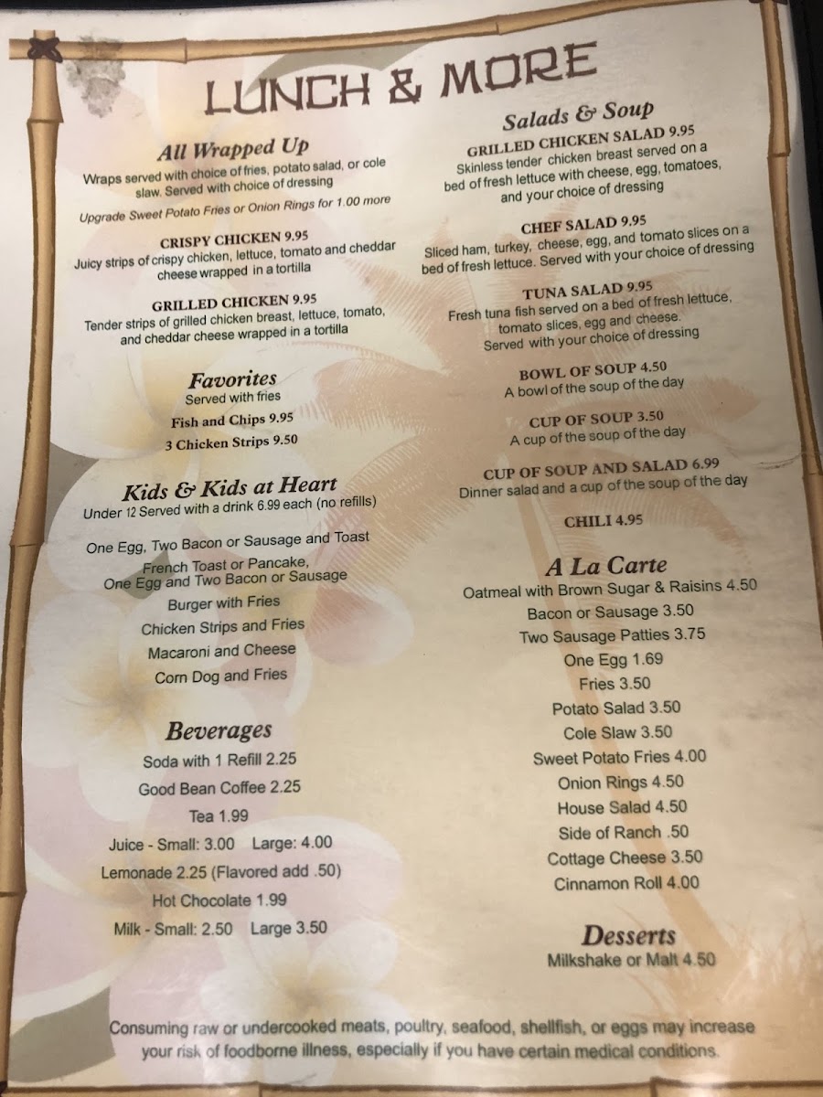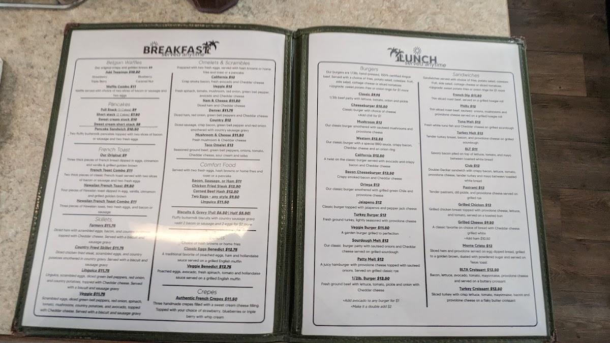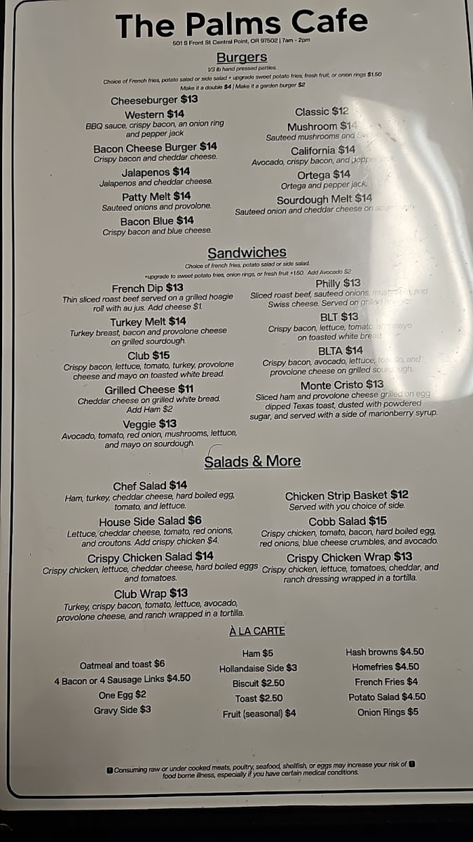 From a reviewer’s perspective, the menu at The Palms Cafe offers a concise yet satisfying breakfast-focused selection that highlights comfort food done right. The breakfast section sets the tone with classics like Belgian Waffles and the Waffle Combo, appealing to both purists and those who want a heartier start to the day. Pancake lovers can choose between the traditional Stack or the richer Sweet Creams Stack, which adds a touch of indulgence without straying from familiar flavors. The French toast options, including Our Original and the French Toast Combo, reinforce the café’s strength in delivering timeless morning staples with consistency and balance. For guests craving something more filling, the skillet choices such as the Farmers Skillet and Cfs Skillet provide a savory, satisfying option that feels substantial and well-suited for a leisurely breakfast or brunch. Rounding out the menu, the omelette and scramble selections like the California and Veggie cater to those looking for egg-based dishes with fresh, lighter profiles. Overall, the menu may not be extensive, but it is thoughtfully curated, focusing on popular breakfast favorites that reflect a dependable, down-to-earth dining experience-making it a fitting conclusion to a comforting meal at The Palms Cafe.